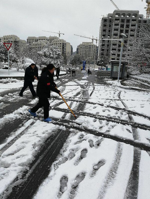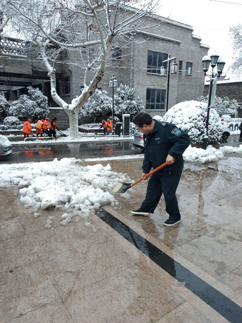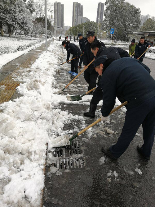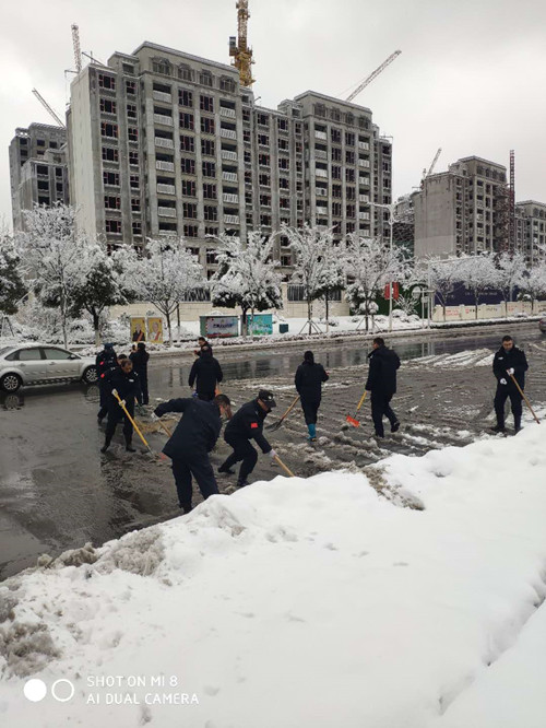 农历正月初三和初四,镇江迎来了已亥猪年的两场降雪,新春佳节的大雪让大地万物银装素裹。伴随着凛冽的寒风,气温骤降,给我公司各项安保工作带来隐患,也给各聘用单位内部及周边道路交通带来诸多不便。