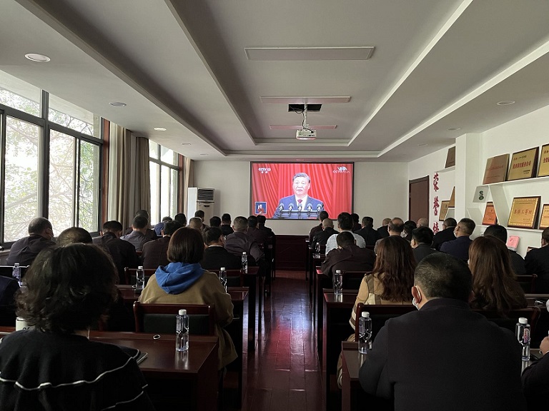 镇江市保安服务有限公司组织全体党员干部集中收听收看党的二十大开幕盛况