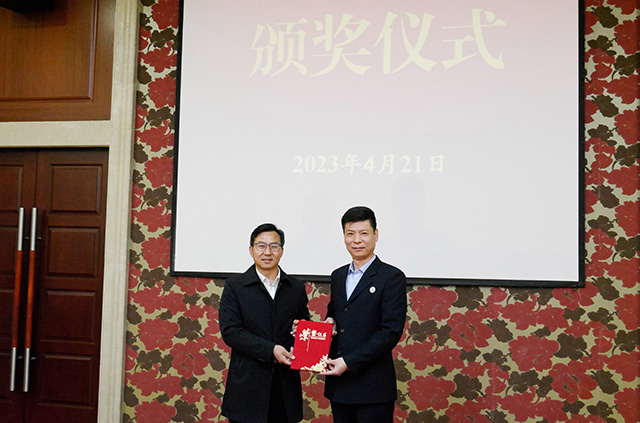 2023年4月21日,公司党委书记黄震、党委副书记仇光年一行向荣获2022年全市内部治安保卫工作的集体和个人送去奖牌、荣誉证书及奖金。